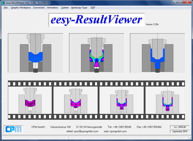 Der eesy-ResultViewer ist die ideale Ergänzung zum Simulationsprogramm eesy-2-form. Es ermöglich das Generieren von Filmsequenzen der verschiedenen Auswertegrößen und kann solche Filme vorführen. Die generierten Filmsequenzen können in verschiedenen Formaten für andere Filmgenerierungsprogramme zur Verfügung gestellt werden.